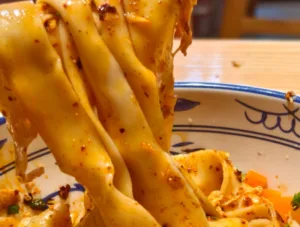 If you’ve found yourself asking, “What are biang biang noodles made from?” you’ve come to the right place. These incredibly wide, belt-like noodles are a superstar of Chinese street food, straight from Shaanxi Province’s Guanzhong region. Their fun name comes from the onomatopoeic “biang, biang” sound the dough makes when chefs expertly slap it on […]