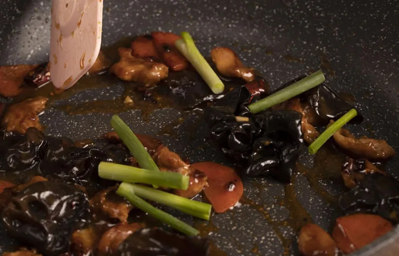 Add Vegetables: Turn the heat up to medium-high. Toss in the sliced carrots and rehydrated wood ear fungus.