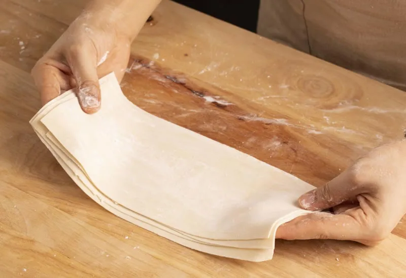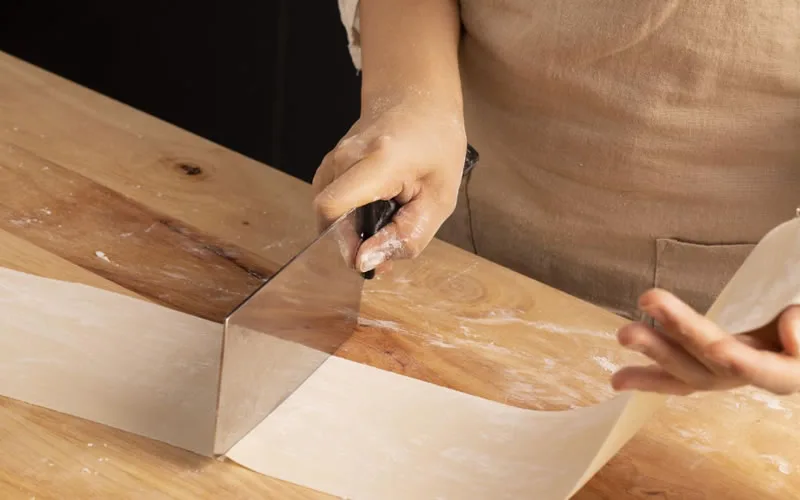 Cut and Portion: Cut the rolled-out dough sheet into strips about 23cm (9 inches) long.