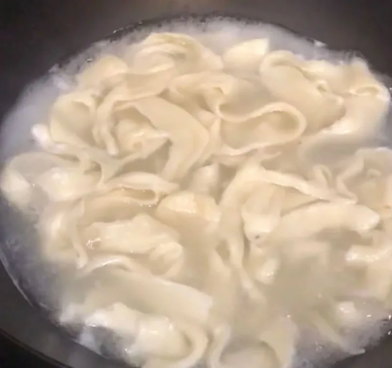 Bring a pot of water to a boil. Add the stretched noodles and cook until they float to the top. Since fresh noodles cook quickly, keep an eye on them!